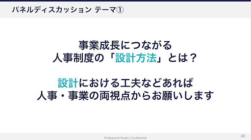 テーマは、まさに本イベントの核心である、”事業成長につながる人事制度の「設計方法」とは?”です。