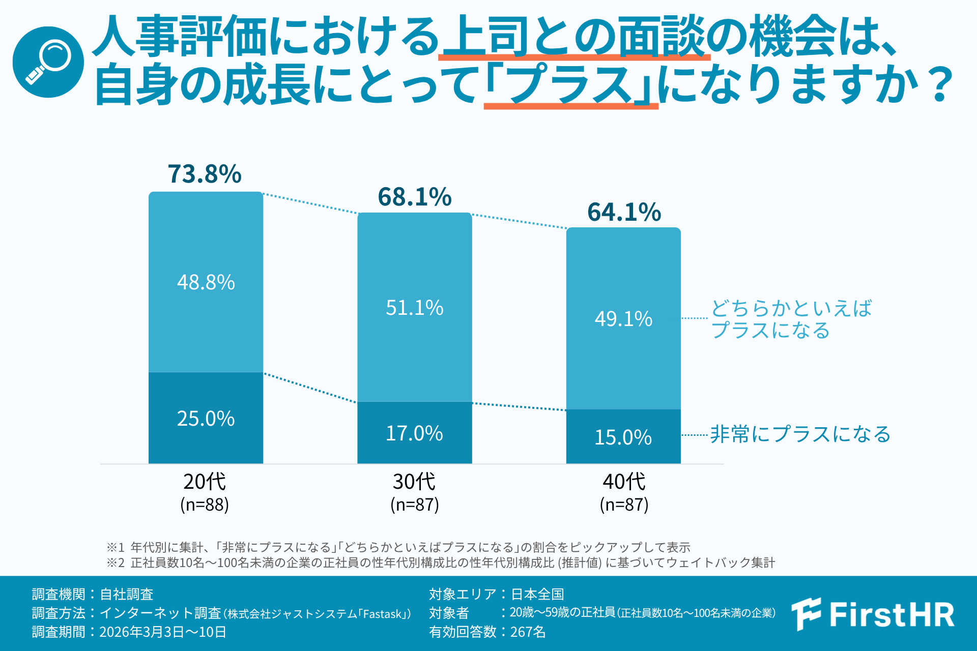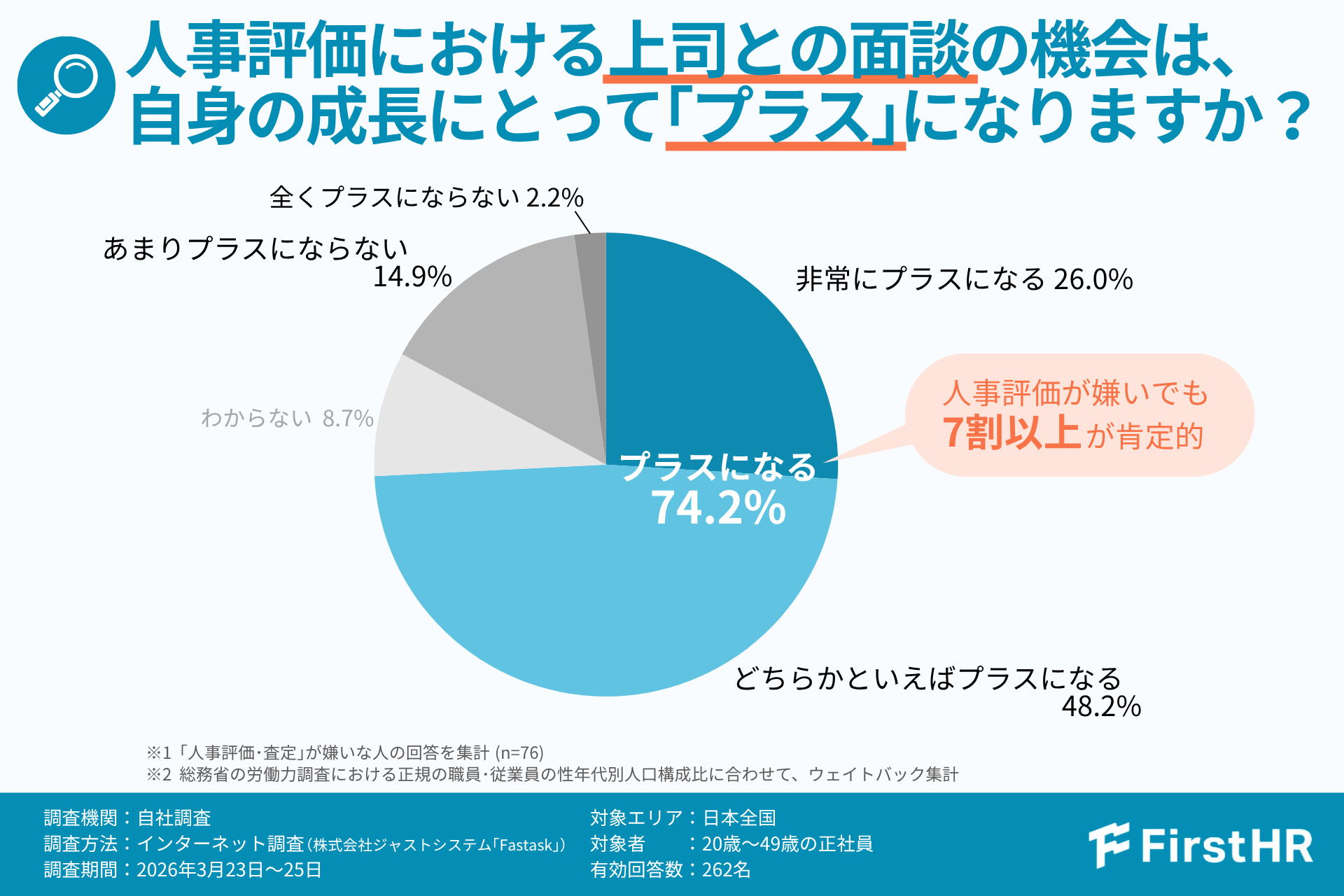 3.人事評価が嫌いでも、74.2%が上司との面談は「プラスになる」と回答